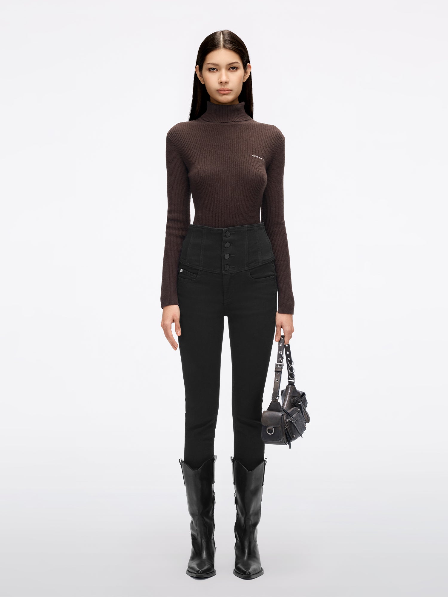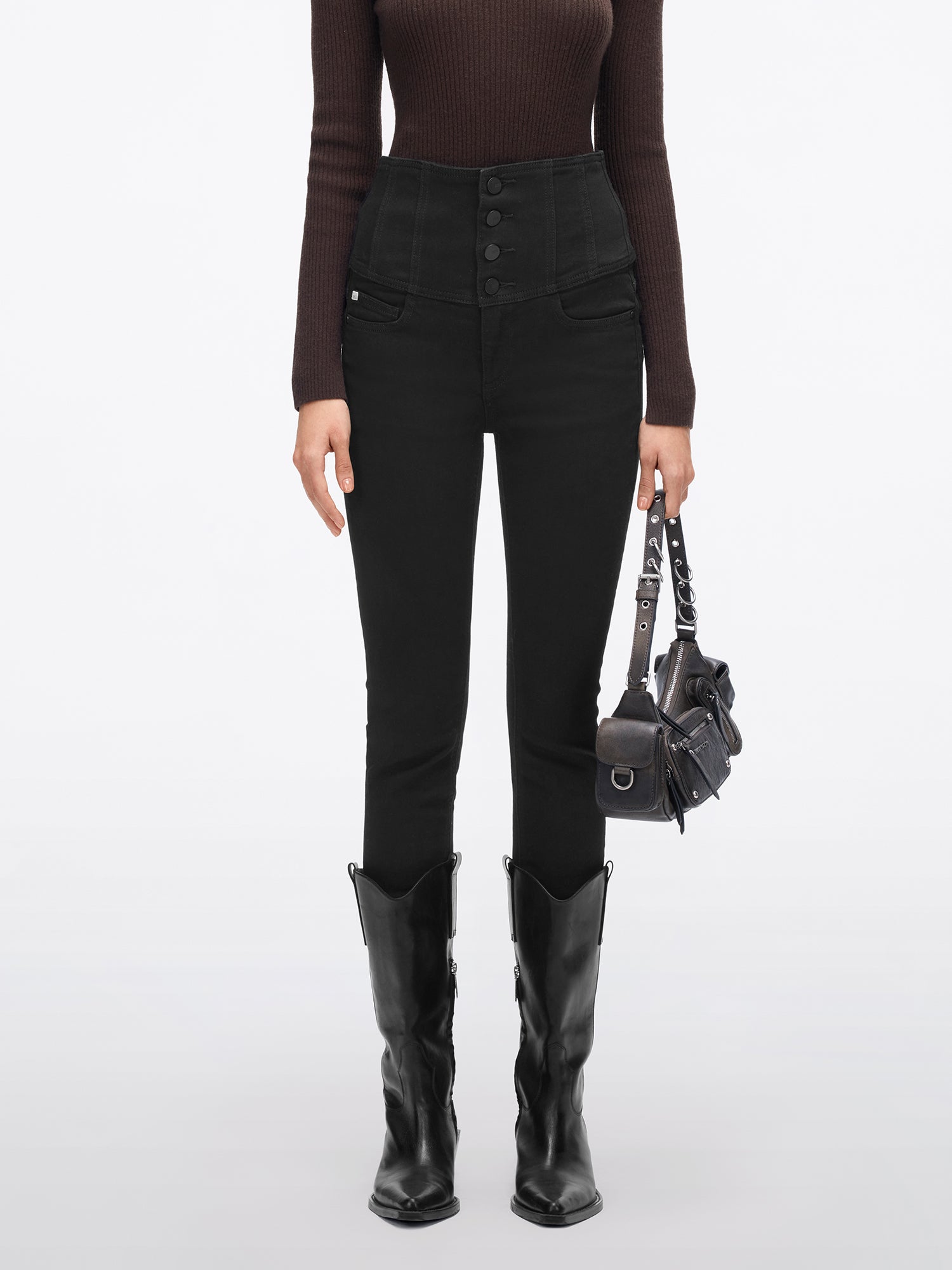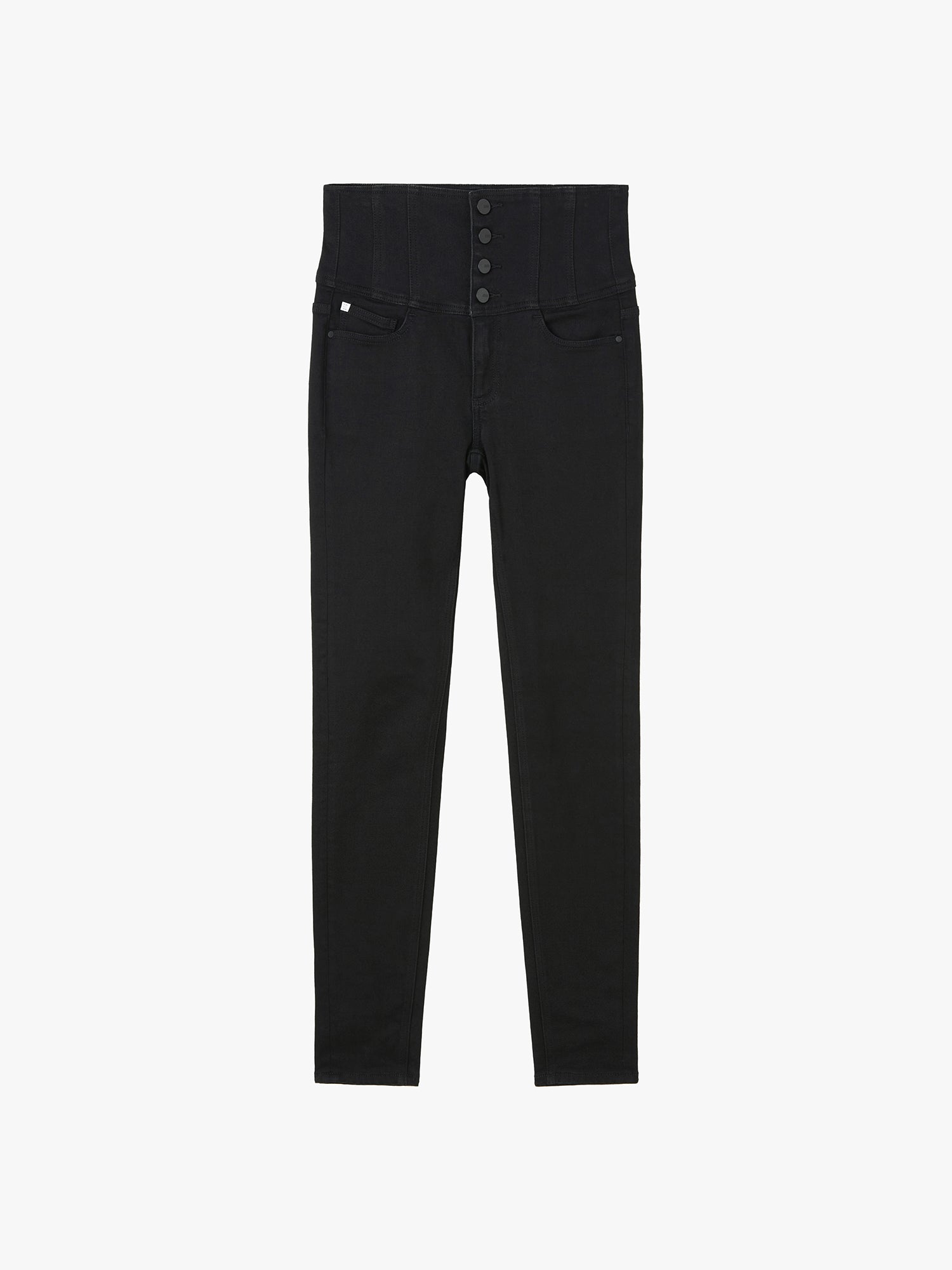 BLACK SUPER HIGH WAISTED JEANS WITH FOUR BUTTONS