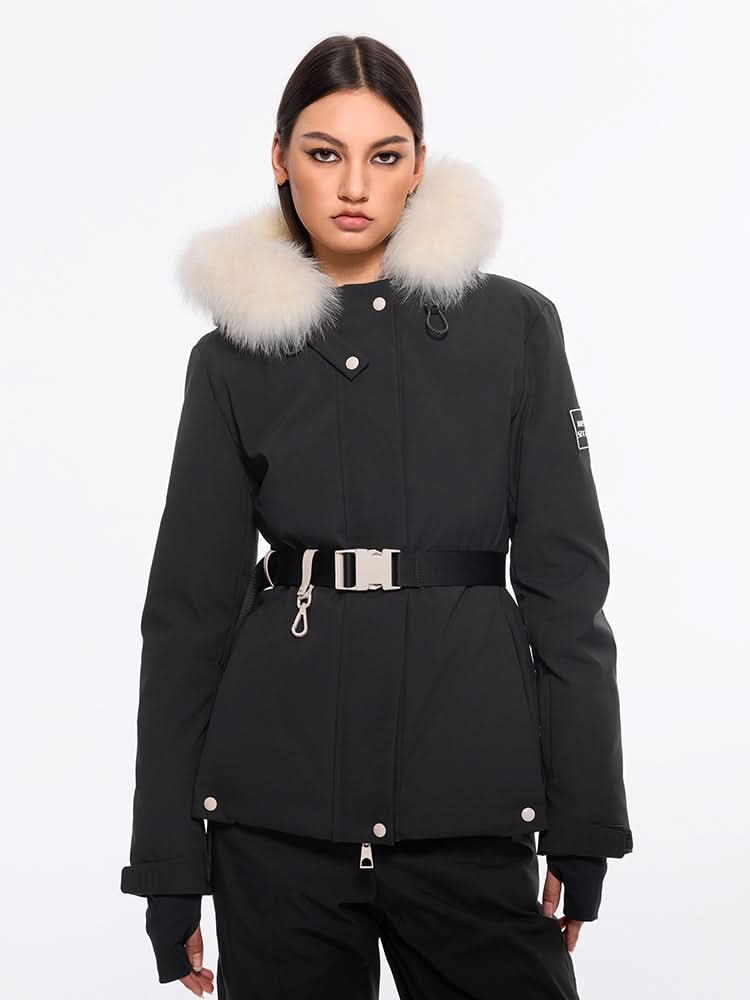 Crafted from high-density polyester for a structured, durable fit that resists sagging, this fabric offers practical windproof, waterproof, and breathable features. The interior is filled with fluffy 90% white duck down, featuring large down clusters and minimal quills for warmth. The detachable fur collar is soft and plush, combining warmth with style. The zipper pockets on the sides, with snap-button embellishments, create a clean, sleek appearance. The Velcro wrist design allows for adjustable fit, while the integrated thumbhole sleeves provide a fashionable and cozy experience. Perfect for outdoor activities.