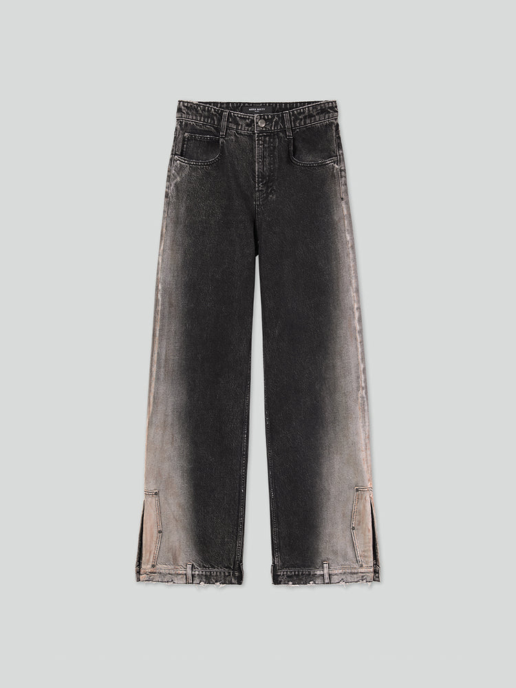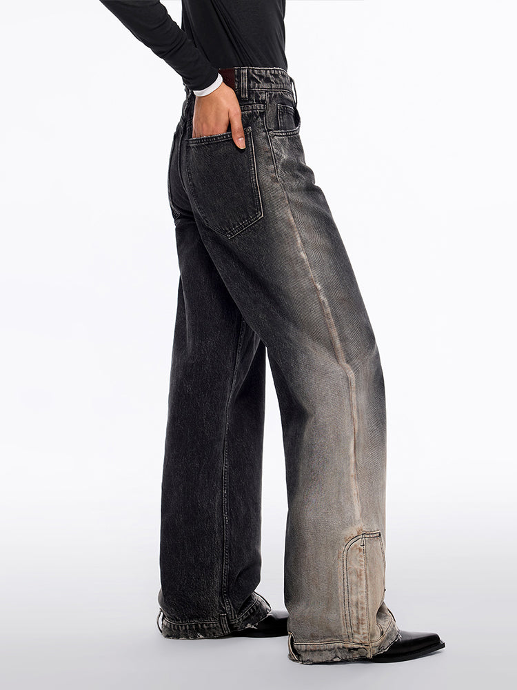 This product is crafted from premium cotton denim, featuring a clear texture and structured feel. Various treatments—including enzyme washing, hand scraping, edge grinding, snowflake fading, and gradient spraying—create a distinctive ombre effect, showcasing the vintage charm of denim. The low-rise design accentuates a sexy waist-to-hip ratio, while irregularly distressed edges add a rugged touch. This season’s upgraded leather patch, with a bold, raised logo, enhances the brand’s premium appeal. The deconstructed waistband and fly create a modern pant leg effect, with each piece featuring unique distressed details.