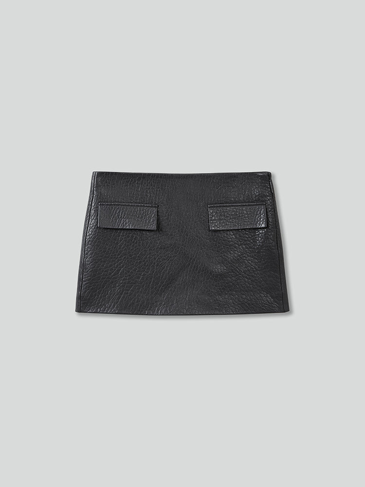 Carefully crafted from luxurious lamb leather, this piece undergoes a complex, specialized treatment, resulting in a glossy surface with a delicate texture and a smooth feel. The leather offers excellent flexibility, stretch, and elasticity, reflecting its high-quality craftsmanship. The comfortable mid-rise waist is paired with decorative flap pockets, adding rich detail to enhance the overall design. A side zipper closure provides a snug fit and makes it easy to wear. The back features a structured, tailored cut that subtly tapers the silhouette, accentuating the waist-to-hip ratio.