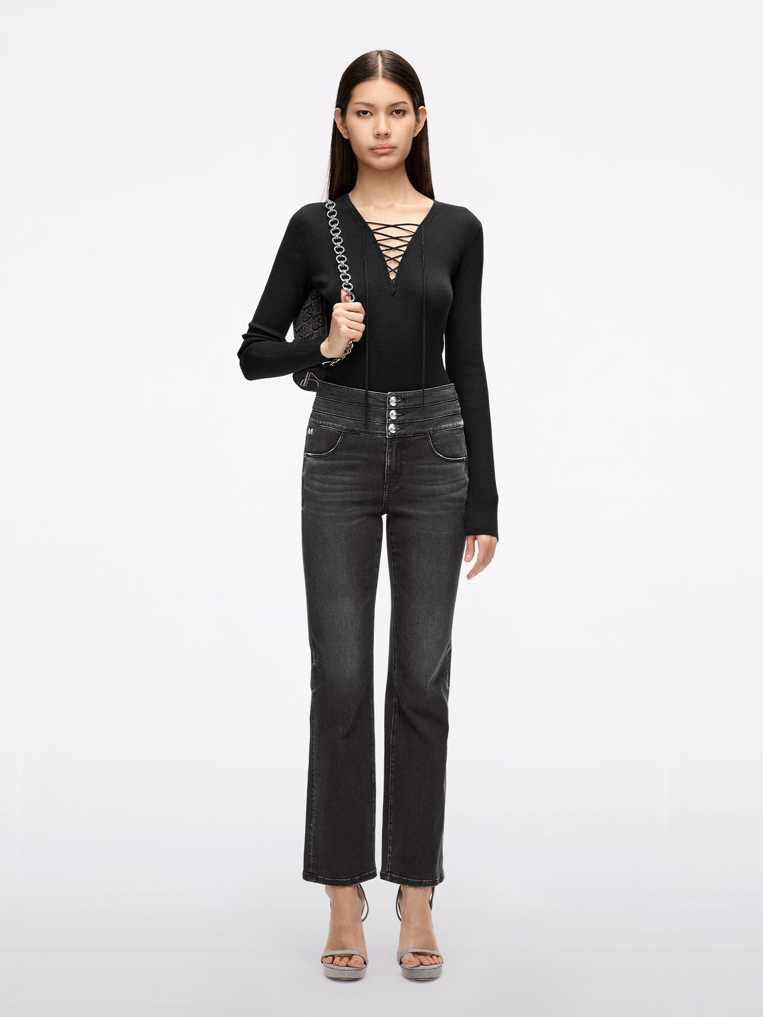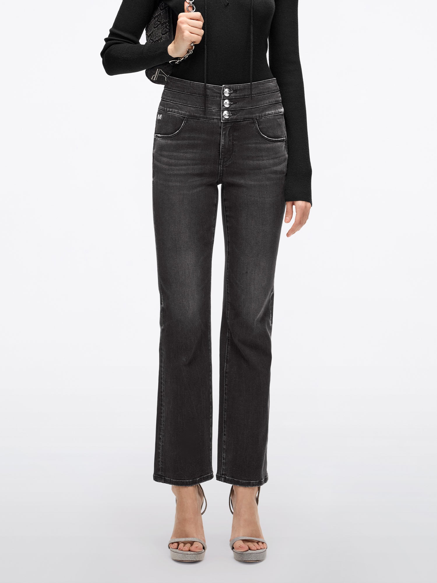 ACID WASH HIGH WAISTED THREE BUTTONS JEANS