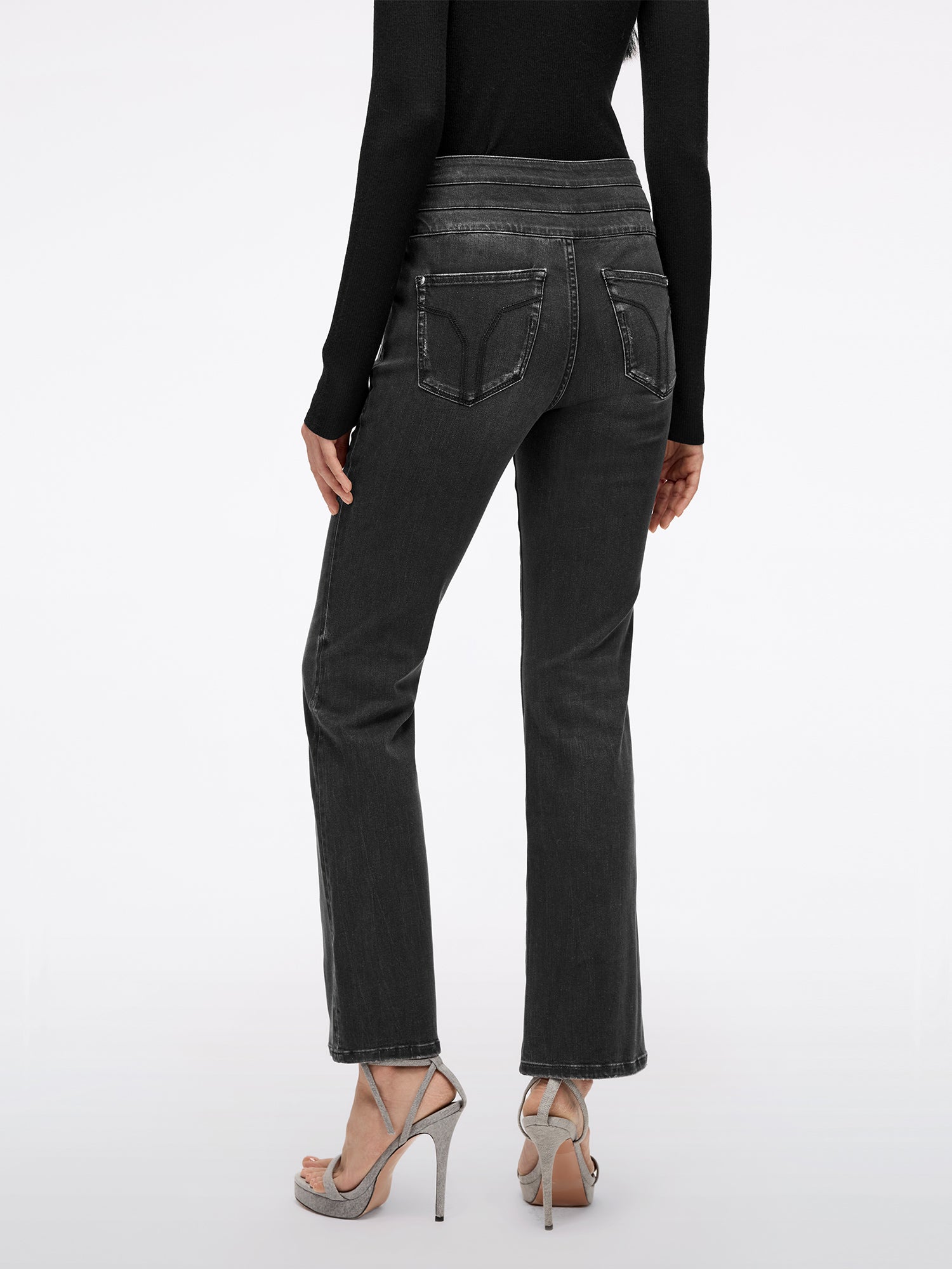 Carefully selected acetate denim fabric, soft and comfortable to the touch, lightweight texture, suitable for spring and summer wear. The horizontal ripped line structure design fits the waistline, comfortably cinching the waist and abdomen. Slightly inclined back pockets, adorned with double-fold lines, lift the buttocks. The frayed hem and slightly flared cuffs decorate the calf shape, fashionable and slimming.