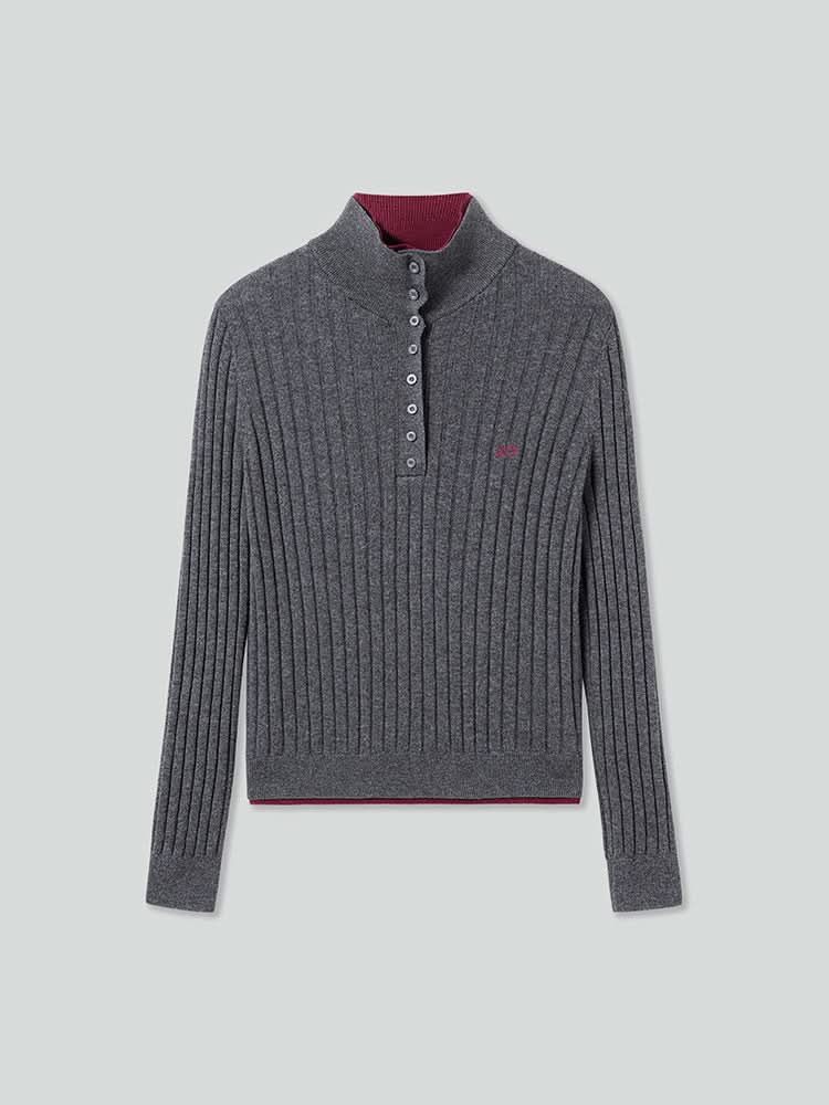 Crafted from premium sheeps wool blended with goat cashmere, this fabric offers a soft, plush texture that feels luxurious and warm, ideal for close-to-skin wear. The button placket design allows for adjustable collar styling, adding a distinctive touch to the look. The exquisite logo embroidery highlights the brand's value, while the contrasting colors make a bold statement. The color-block design creates a faux layered effect, enhancing the garment's layering and fashion-forward appeal.