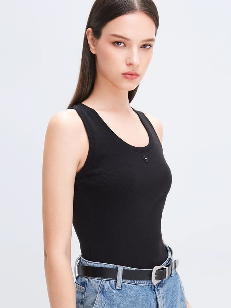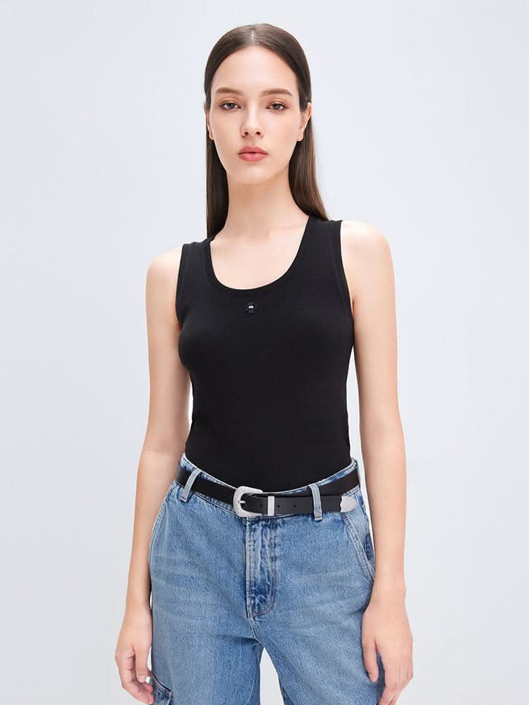 CREW NECK SLIM FIT SLEEVELESS T-SHIRT