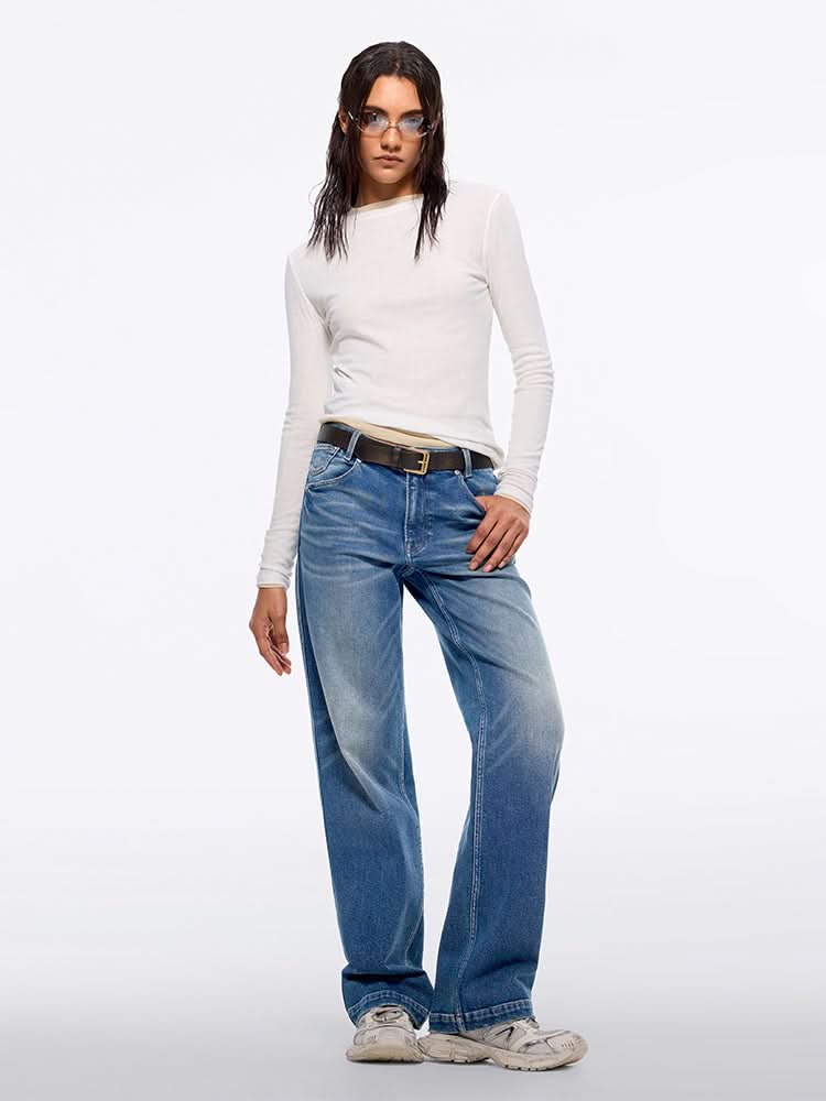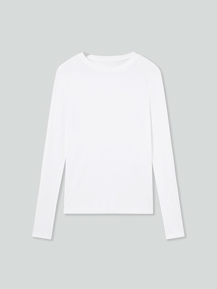 Crafted from high-quality combed cotton, the yarn fibers are naturally fluffy, providing a refreshing feel without sticking to the skin. The fabric features clean, straight lines and a firm yet comfortable touch, ensuring the garment maintains its shape without sagging. The simple round neck design allows for easy styling, accentuating the shoulder and neck lines for a casual yet refined look. A contrasting jacquard label at the back adds a fashionable touch, breaking the monotony of the solid color scheme. The slim-fit silhouette flatters the figure with a soft drape, offering both comfort and style.