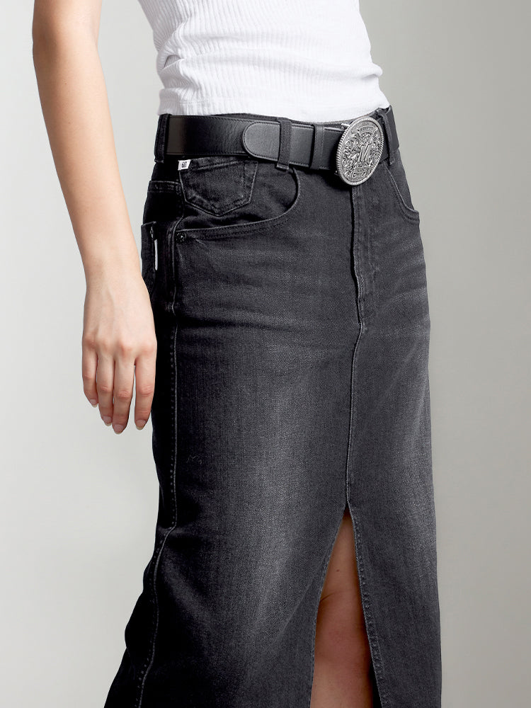 Carefully selected vintage cotton fabric, sourced from Turkey, features long cotton fibers with a good surface sheen. The diagonal weave is delicate, creating a rich and texture on the fabric. With elastic properties in the warp direction, it offers a comfortable and stylish fit when worn. Through multiple processing techniques, it showcases a sophisticated retro denim style with rich washing effects. Decorated with shield-shaped small pockets, it adds a touch of trendy personality without sacrificing fashion fun. The combination of York lines and symmetrical patch pockets, along with the vintage bleached effect, presents a unique visual appeal. The avant-garde front slit design subtly reveals the leg lines while walking, adding a touch of natural charm with a hint of cleverness.