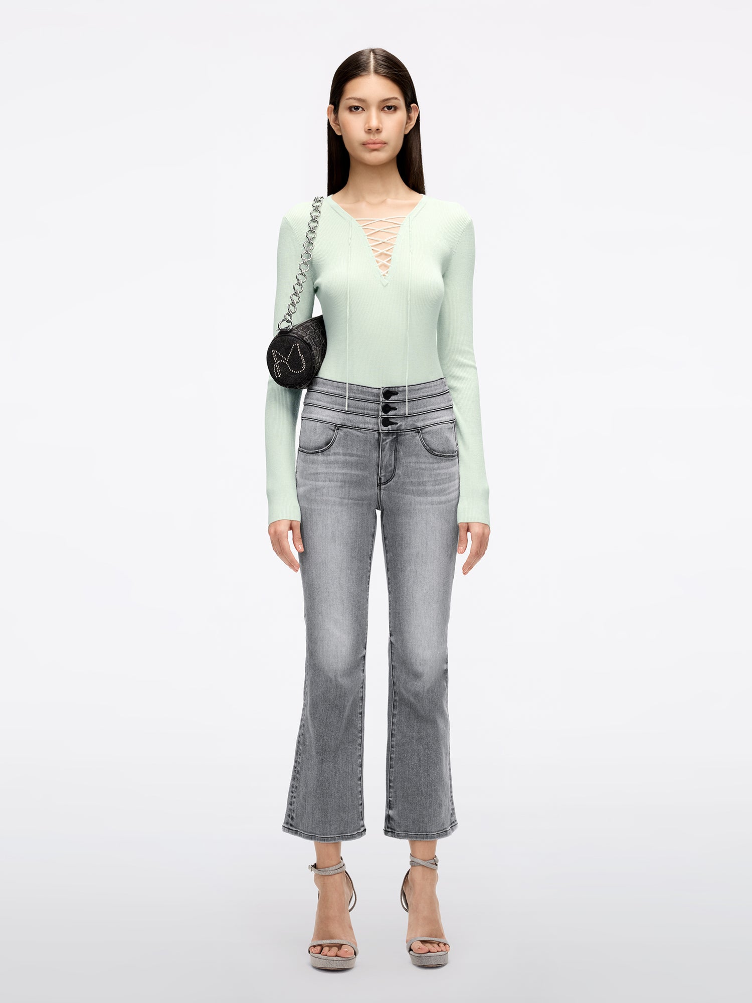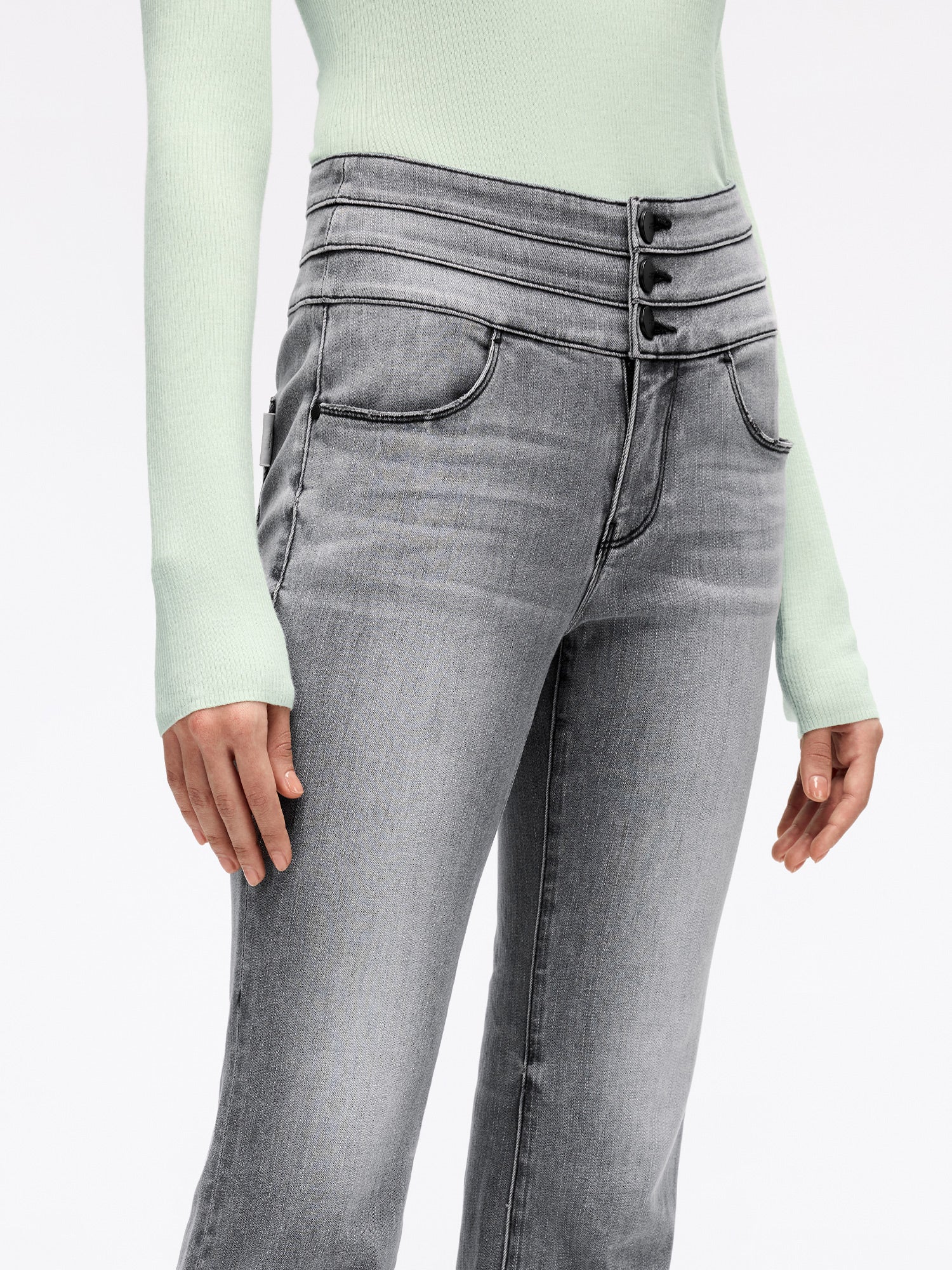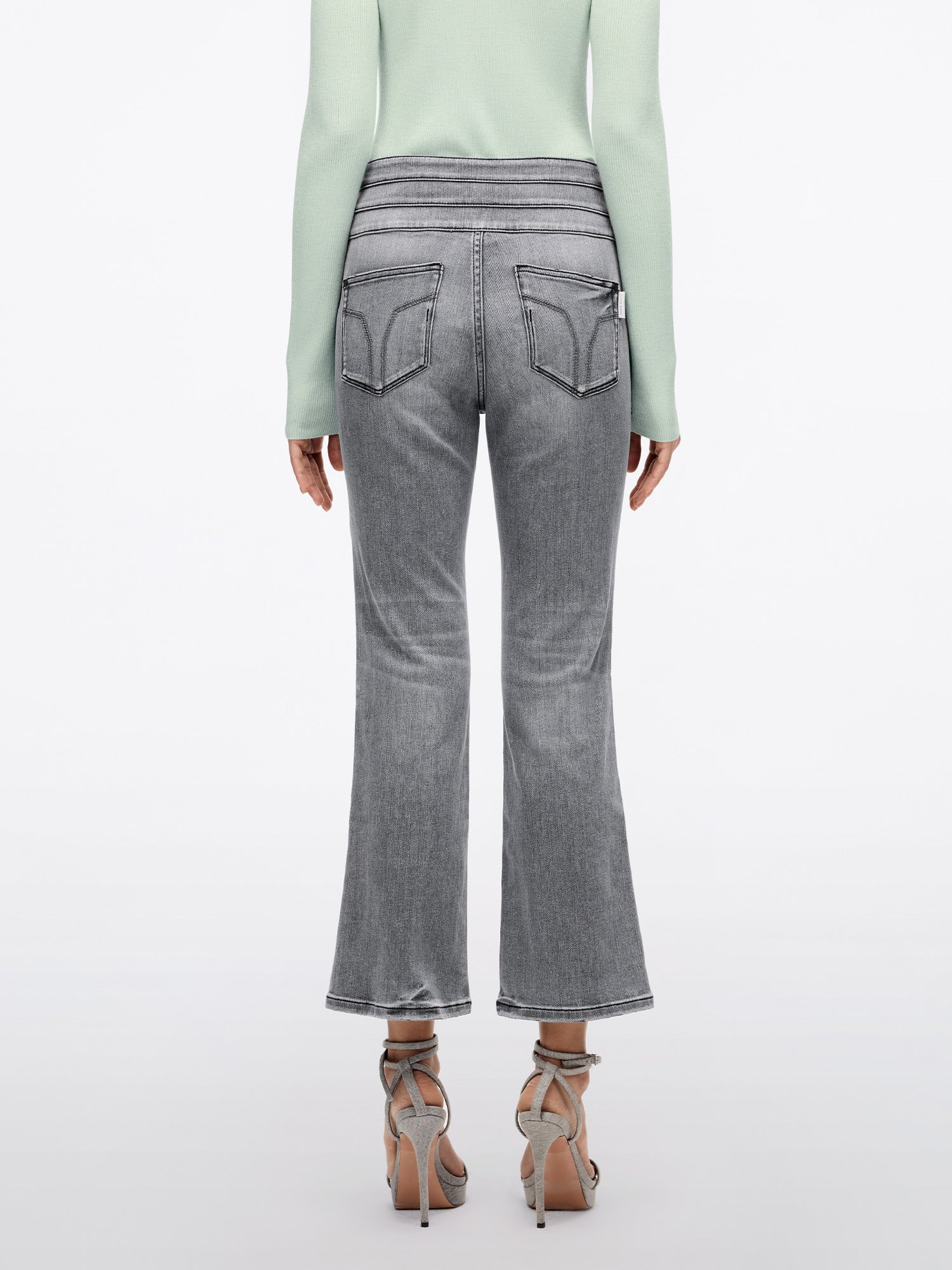 HIGH WAISTED LIGHT GREY FLARED JEANS