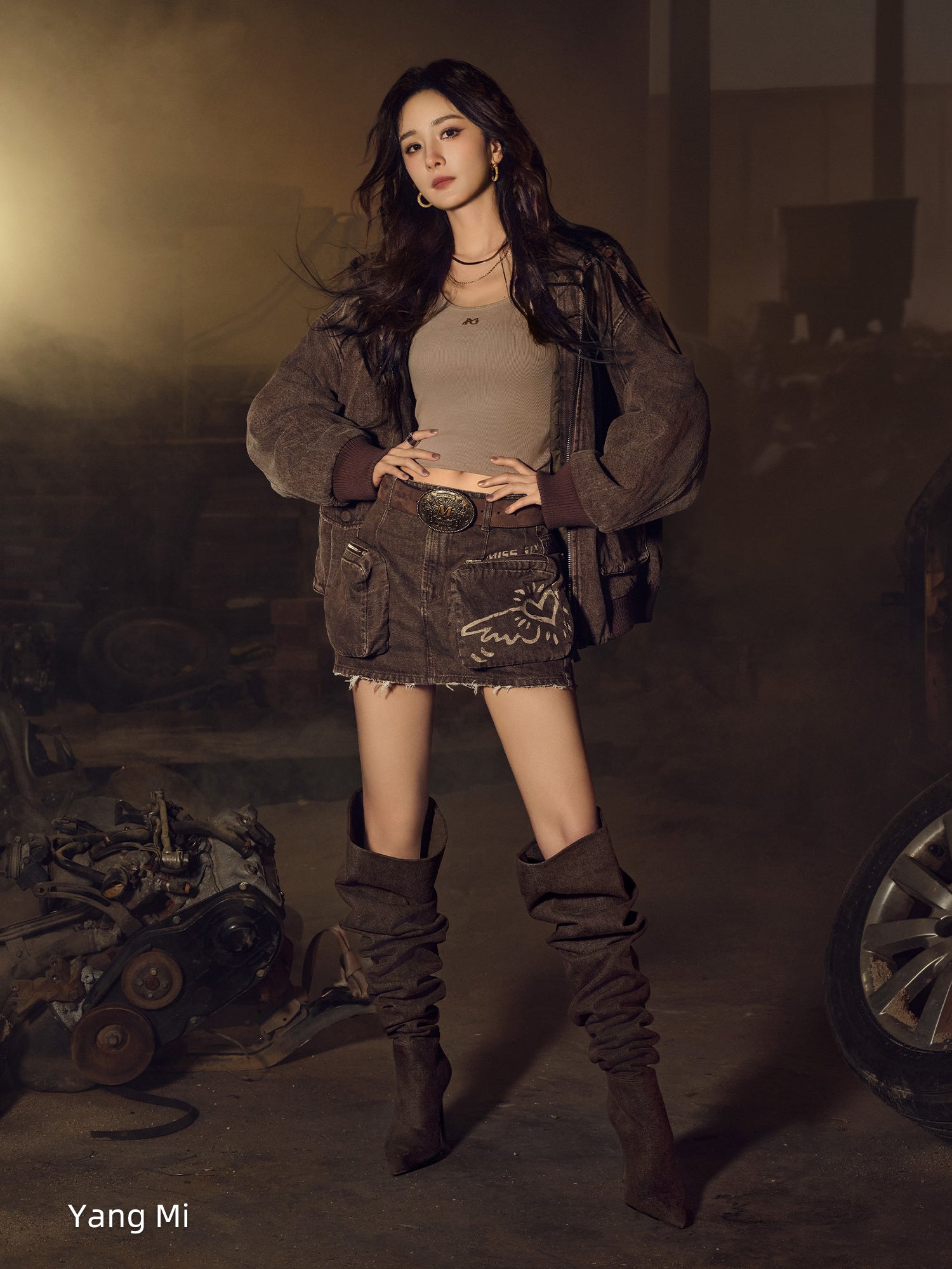 Crafted from premium cotton denim, the fabric offers a full, textured feel with a coarse slub texture and clear twill pattern, providing structure and comfort. The vintage-inspired khaki wash delivers a naturally vibrant color, making it easy to wear and style. Featuring custom co-branded buttons with a textured surface and antique brass finish, they highlight the intricate details. The cracked print design contrasts with the retro khaki tone, adding a distinctive fashion element. Full, structured utility pockets enhance the overall design, while hand-finished frayed edges offer a modern boho vibe.