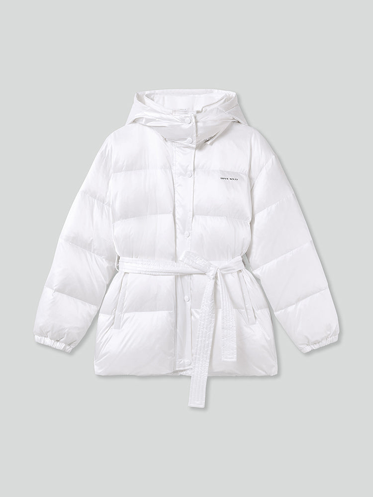 Crafted from specialty yarns, this piece features a 20D ultra-thin satin effect, enhanced by post-processing to create a glossy and full surface that feels as smooth as heavy silk, exuding an elegant and high-end sheen. Filled with premium goose down, it offers a lightweight luxury warmth, perfectly blending style and comfort. The chic stand collar, combined with a zipper and snap buttons, provides double protection against the wind, effortlessly showcasing fashionable winter looks. Accompanied by a matching belt, it easily cinches the silhouette for an upgraded overall appearance. The elastic cuffs provide a sharp look, effortlessly embodying a trendy sporty vibe.