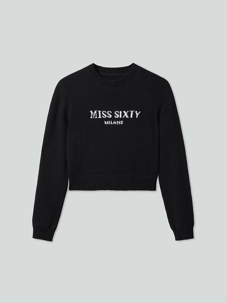 Crafted from premium sheep wool blended with cashmere, the fine, soft fibers give the fabric a plush and delicate feel, ensuring a skin-friendly and comfortable experience. The garment is lightweight and warm to the touch, providing effortless wear. The integrated knit jacquard lettering in contrasting colors adds a striking visual element, highlighting exquisite craftsmanship. The cropped design with a subtly cinched silhouette creates a flattering fashion-forward proportion. The ribbed cuffs offer a relaxed and easygoing vibe, completing the look with a sense of laid-back comfort.