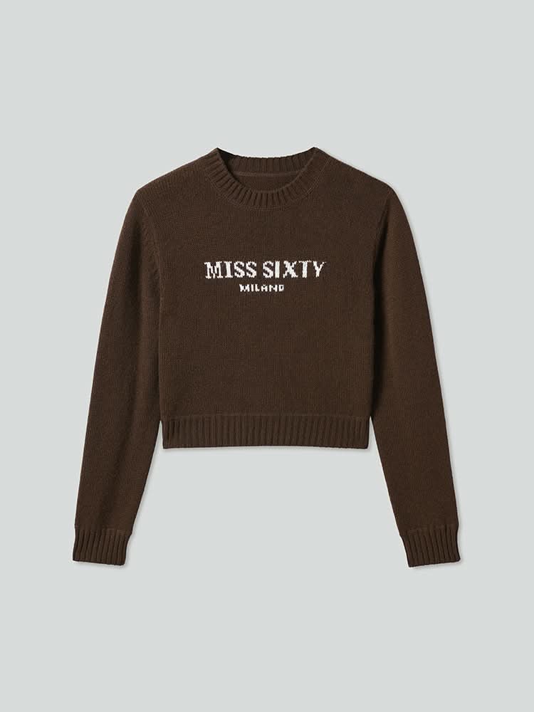 Crafted from premium sheep wool blended with cashmere, the fine, soft fibers give the fabric a plush and delicate feel, ensuring a skin-friendly and comfortable experience. The garment is lightweight and warm to the touch, providing effortless wear. The integrated knit jacquard lettering in contrasting colors adds a striking visual element, highlighting exquisite craftsmanship. The cropped design with a subtly cinched silhouette creates a flattering fashion-forward proportion. The ribbed cuffs offer a relaxed and easygoing vibe, completing the look with a sense of laid-back comfort.