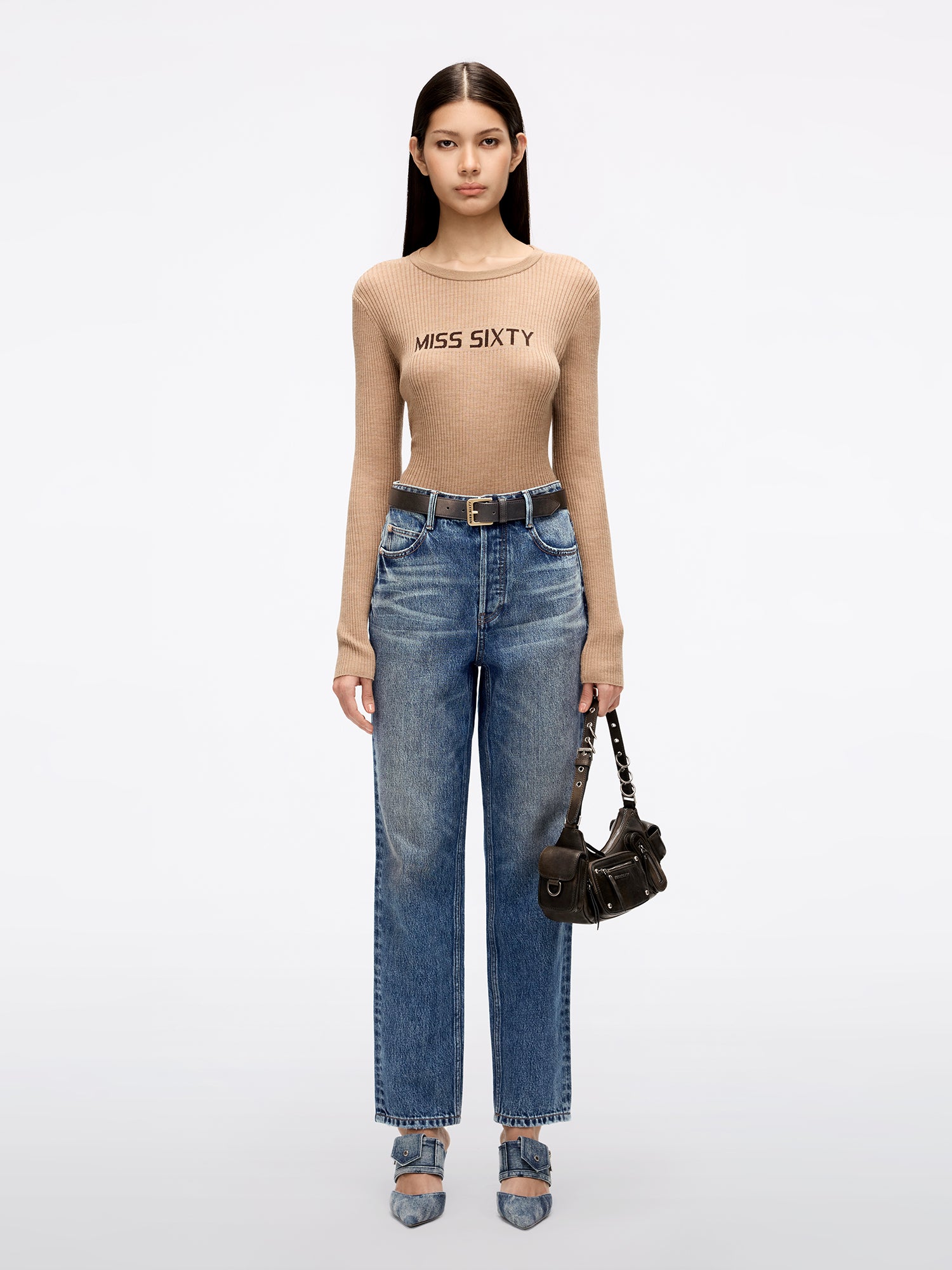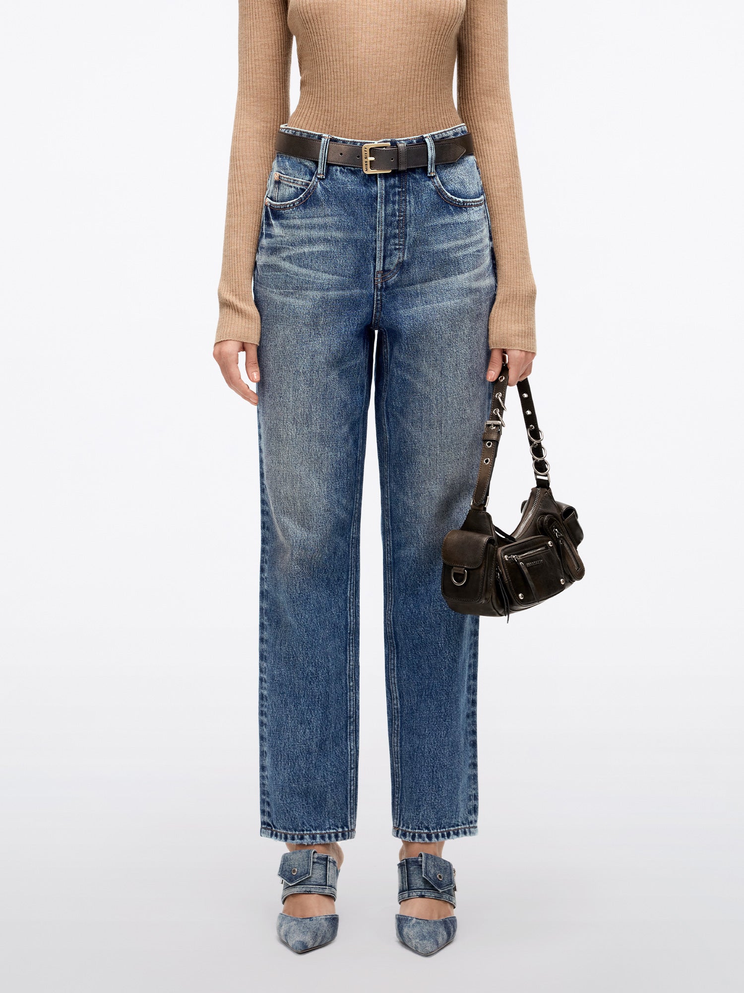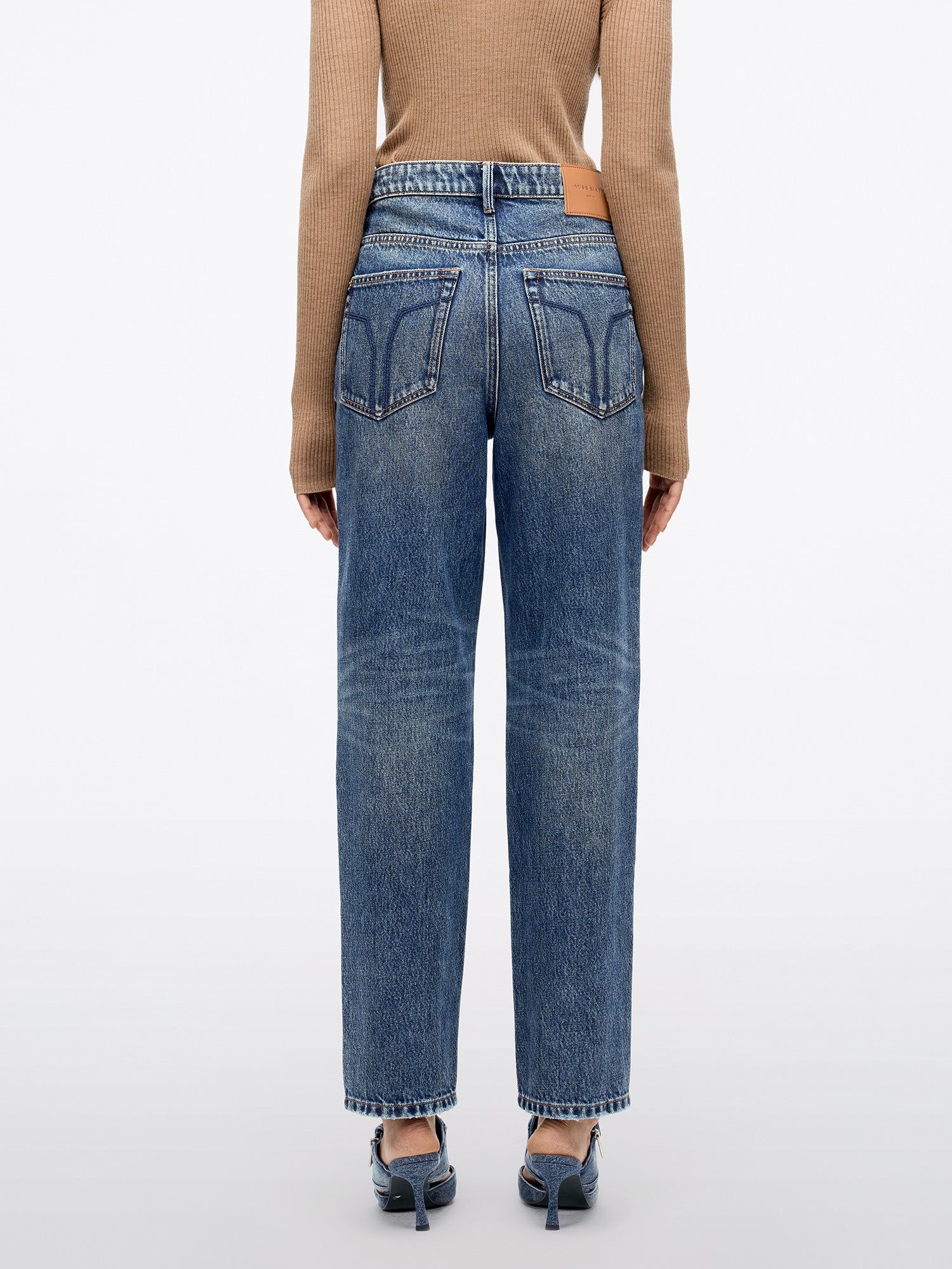 Selected cotton denim fabric, with a retro and natural color, providing a crisp and stylish appearance. The tapered pants cut creates a slimming effect, particularly friendly to pear-shaped body types. Hand-stitched whiskers and vintage white abrasion break the monotony, while the button-front closure adds a touch of novelty to the design concept.