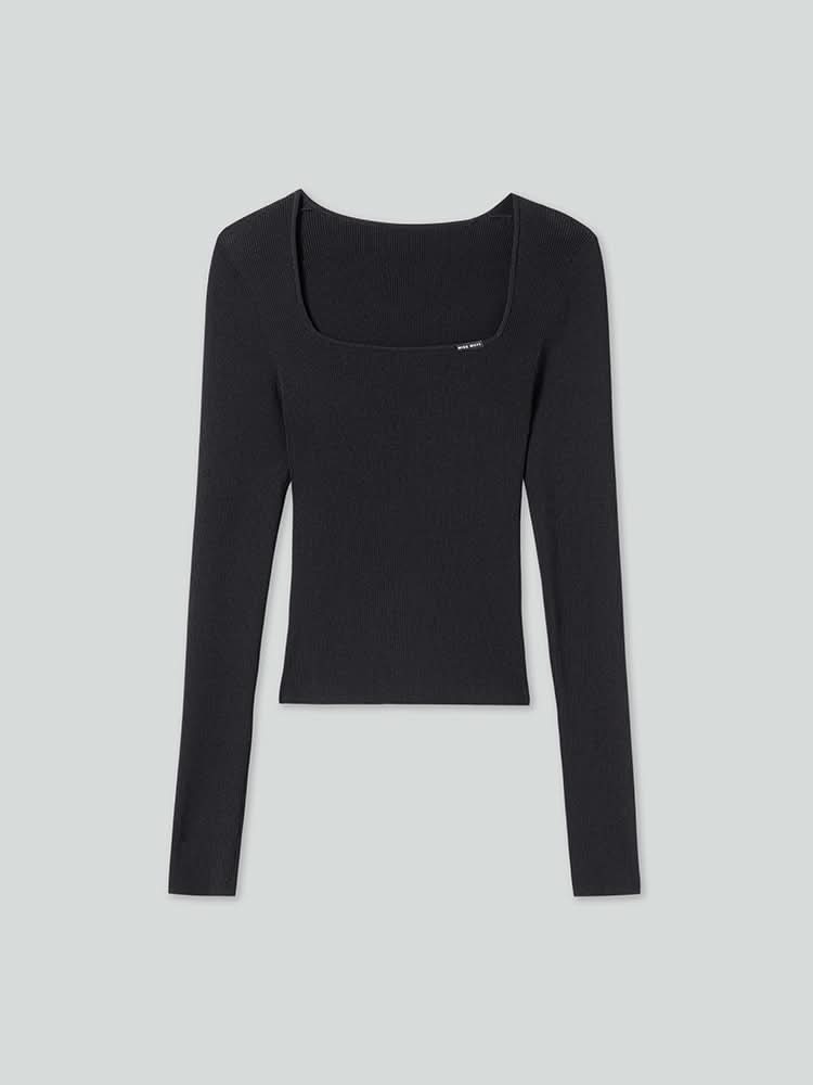 Crafted from high-quality Casino composite long-fiber yarn, this fabric is as soft and delicate as cashmere, with a smooth, luxurious feel that ensures comfortable, unrestricted wear. The tightly woven material features nylon fibers that enhance the yarn's tensile strength and durability, adding natural texture and providing excellent elasticity and sheen for strong wearability. The subtly sexy U-shaped neckline is adorned with a logo woven label, adding intricate detail and a touch of sophistication. The neatly finished hem offers a clean, structured look, while the vertical ribbed texture accentuates a slender silhouette. The streamlined cuffs further enhance the slender lines of the arms.